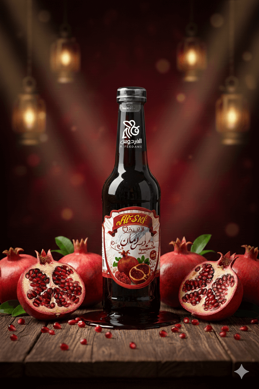 تقدم شركة الفردوس فخر إنتاجها من دبس الرمان الطبيعي، المحضر بالطريقة التقليدية التي تحافظ على اللون الياقوتي الداكن والنكهة المركزة. نحن نعتصر أجود ثمار الرمان الحامضة لنقدم لك خلاصة لا مثيل لها، خالية من الأصباغ والمواد الحافظة أو السكريات المضافة.